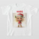Celebre a temporada com esta camiseta personalizada com uma garota de cabelos encaracolados em traje clássico de Natal. Personalize-o com o seu nome para um olhar encantador e festivo perfeito para diversão de férias.