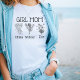 Um simples design de texto preto-e-branco: Menina Mãe com três flores silvestres e nomes de meninas. Adicione sua filha a essa camiseta fofa. presente de excelente para Dia de as mães!