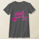 Menina na mostra "21" da rocha T do logotipo no rosa e no branco.