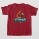 design de camisa excelente com uma menina ruiva com um cavalo de pônei de carro Mustang.