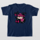 T-shirt de cabelo triguenhos do design da estrela do rock da menina, canecas, bolsas, botões, ímãs, chaveiro, etiquetas, cartões, mousepads, pulsos de disparo, andmore que caracterizam a guitarra cor-de-rosa e preta, álbum gravado, estrelas, notas musicais, e uma menina triguenha no boné do crânio.