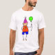 Ilustração lunática bonito de um menino pequeno dos desenhos animados que vai a uma festa de aniversário que veste seu chapéu do partido e que guardara seu balão. Imagem disponível em vários presentes e produtos.