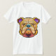 Unleash your unique style and cozy up in our captivating Stained Glass Bulldog T-shirt! This isn't just a T-shirt, it's a wearable masterpiece, featuring a majestic bulldog's face rendered in a vibrant, intricate stained-glass mosaic. Each facet of color – from warm amber and golden hues to touches of rich violet and cool blues – comes together to create a striking portrait that's both bold and beautiful.