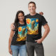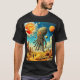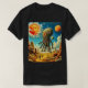 A giant squid-like creature hovers in the air over a rocky planet in this cool sci-fi t-shirt design.