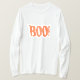 Camiseta básica do Dia das Bruxas mostrada em branco/laranja. Text-Boo Personalize esta camisa ou comprar como está.
