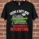 Adicione um pouco de humor ao seu guarda-roupa com esta camiseta espirituosa e viscosa, com a frase ousada: "Ter uma mente suja torna as conversas comuns muito mais interessantes." Perfeito para qualquer pessoa com uma personalidade lúdica e um excelente de humor, este design é um começo de conversa garantido. Ideal como presente para amigos, parceiros, ou qualquer pessoa que ame frases engraçadas e sarcásticas. Excelente para festas, excursões casuais, ou apenas mostrando seu lado divertido todos os dias. Feita para conforto e estilo — esta árvore é obrigatória para aqueles que amam manter as coisas interessantes!