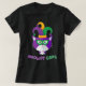 Camiseta Meowdy Gras Mardi Gras Cat com chapéu e máscara