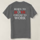 Subtis, divertimento, provérbios do humor os PRESENTES de S pelos HOMENS ' são ideais para os esportes o homem ou a mulher, que são um fã ávido do mergulho autónomo. DESIGN: O bolso dianteiro tem um trabalho de arte branco de um peixe com sua boca aberta aproximadamente para comer dois peixes menores, e a parte traseira diz o "nascer mergulhar forçado para trabalhar" em uma pia batismal corajosa branca e vermelha. PERSONALIZE-A: Selecione a cor e o tamanho de seus camisa/jaqueta/hoody ou ligação em ponte e o fraseio será aplicado automaticamente à parte superior do verão ou do inverno de sua escolha. Assegure-se de por favor que você escolha somente a roupa colorida luz para este design particular. ESTILO & COR DE PIA BATISMAL: Estes podem ser mudados a alguma de sua escolha pessoal.