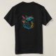 A design de camiseta "Mergulhar na Disciplina" apresenta uma fonte ousada e lúdica, colocada contra uma vibrante cena submarina. Formas e linhas abstrato coloridas, que lembram ondas e gotículas de água, rodeiam o texto. O design geral transmite uma sensação de energia, diversão, e a ideia de mergulhar de cabeça em um estilo de vida disciplinado.