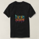 A design de camiseta "Mergulhar na Disciplina" apresenta uma fonte ousada e lúdica, colocada contra uma vibrante cena submarina. Formas e linhas abstrato coloridas, que lembram ondas e gotículas de água, rodeiam o texto. O design geral transmite uma sensação de energia, diversão, e a ideia de mergulhar de cabeça em um estilo de vida disciplinado.