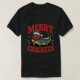 A festive green bearded dragon with a red beard, Santa hat, and string lights, surrounded by holly and stars with the phrase “Merry Crickets.”