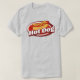 Julho é Mês Quente de Cachorro. Retro parece design com um cachorro-quente com texto e cores divertidos.