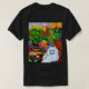 Camiseta com pintura de Louis Wain Master of Cat College (1860-1939). Um atencioso gato branco com olhos azuis impressionantes senta-se ponderadamente ao lado de um vibrante conjunto de belas flores. A majestosa faculdade de gatos paira ao fundo sob um céu rosa e azul. Um presente maravilhoso para amantes de gatos e arte inglesa.