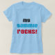 Minhas camisas Gammie Rocks, cartões, adesivos, sacos de tote, ímãs, botões e outros itens com um design de texto preto, azul e vermelho. Estes itens do Meu Gammie Rocks são uma forma excelente de mostrar o seu amor pelo seu jogo especial!