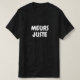 Uma camiseta preta com texto apenas design com uma palavra francesa: meurs juste, que pode ser traduzida para: simplesmente morrer. Você pode personalizar esta t-shirt para alterar o tipo de fonte, a cor e alterá-la para lhe dar uma aparência única.
