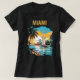 Sunset sobre Miami, Flórida, barco à vela na água e na cidade à beira-mar.