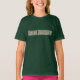 Texto verde lendo "STEALTH MILLIONAIRE" em uma fonte semelhante à encontrada na moeda. Nunca se sabe quem pode ser milionário. Nem todos vivem grandes com roupas esfarrapadas, o carro de rico, ou casa grande. Não anunciam que estão em boa situação. Eles são milionários furtivos. Vista esta camisa e você não é realmente um milionário furtivo, mas se ninguém acredita que o seu segredo é seguro; talvez você esteja escondido à vista. Para milionários furtivos e aqueles que trabalham nisso.