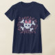 O crânio bonito e os crossbones dos desenhos animados da menina pirateiam o emblema, com arco cor-de-rosa grande e linha squiggly fundo. Doce e picante, t-shirt, sua, cartões, presentes.