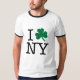 Nova-iorquino irlandês ou de St. de NYC o dia da almofada mais partier? Mostre seus orgulho e estilo irlandeses de New York com esta torção no clássico que eu amo (CORAÇÃO) o design de NY com uma folha do trevo em um t-shirt ou em um outro de nossos produtos. O dia do St. Patricks está vindo e este gráfico é perfeito para o Nova-iorquino irlandês ou aquele irlandês justo para o dia e comemoração com outras pessoas irlandesas provisórias do partido. O t-shirt olha impressionante com uma cerveja!
