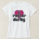 Eu rolo derby do coração (com uma varredura do azul) na pia batismal preto e branco da estrela em um rosa quente e um crânio e uns crossbones do preto enchi o coração