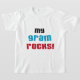 Minhas camisas Gram Rocks, cartões, adesivos, sacos para totas, ímãs, botões e outros itens com um design de texto preto, azul e vermelho. Estes itens da minha avó Rocks são uma forma excelente de mostrar o seu amor pelo seu programa especial!