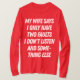 "Minha esposa diz que tenho apenas duas falhas, não ouço e outra coisa" Engraçado Presente para o Marido Esta camiseta hilária é o presente perfeito para o marido que está sempre em apuros. Apresentando uma design espirituosa que se diverte na piada clássica do marido, esta camisa certamente trará um sorriso para a cara de qualquer um. Principais recursos: Design Humoroso: uma citação engraçada e relacionável para qualquer casal. Material de alta qualidade: feito de tecido macio e confortável. Presente perfeito: ideal para aniversários, feriados, ou só porque. Ordene o seu hoje e deixe o riso começar!