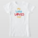 Minha Lola me ama T-shirts, cartas, adesivos, bolsas de fôlego, e mais com texto vermelho, amarelo e azul colorido e design cardíaca. Essa Lola me ama roupa e os itens de presentes farão a Lola sorrir!