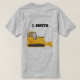 Minha outra viagem é uma escavadora em uma fonte preta e maiúscula com uma imagem de ícone de um escavador laranja. Preparado em branco sólido.