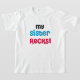 Um divertimento, um texto colorido e um coração projetam com vermelho, azul, e o texto preto ou branco que lê minhas rochas da irmã em t-shirt da irmã, em vestidos sem mangas, em camisas do plissado, em vestidos do plissado, em camisolas dos chapéus, em bodysuits do tutu, em camisetas longas da luva, em t-shirt do raglan, em t-shirt orgânicos, e no outro roupa perfeito para deixar o mundo para saber que você tem a melhor irmã nunca!