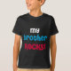 Para os miúdos e os bebês que têm o melhor irmão do mundo, amarão vestir estes t-shirt escuros, camisetas longas da luva, camisolas, hoodies, e outros artigos do roupa que lêem meu irmão balançam com um design branco, vermelho, e azul legal do texto e do coração!