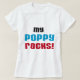 Minhas camisetas Poppy Rocks, cartas, adesivos, sacos para tote, ímãs, botões e outros itens com um design de texto preto, azul e vermelho. Estes itens do My Poppy Rocks são uma forma excelente de mostrar o teu amor pela tua papoila especial!