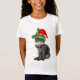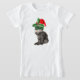 Camiseta Moda Gato posando com chapéu de Papai Noel