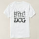 Esta camiseta personalizada com foto de cachorro apresenta a citação "A vida é melhor com um cachorro" com a foto e o nome do seu animal de estimação personalizados. Um presente atencioso para amantes de cães, para mães e pais de cães, e pais de animais, perfeito para o Dia das Mães, Dia dos Pais, aniversários e presentes de Natal.