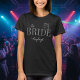 Elegant black, gray and white "The Bride" shirt, perfect for a bachelorette party wedding shower, or getting ready on the wedding day. Features modern typography, toasting champagne glasses, and personalized name. A stylish wedding party gift! Created by Simply Farmhouse Press.