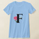 Camiseta Monograma - Letra inicial F em preto com rosa rosa