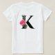 Camiseta Monograma - Letra inicial K em preto com rosa rosa