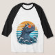 Camiseta Básica, Mangas Raglan 3/4, Branco/Preto, Adulto M