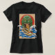 Engraçado desenho animado de um faminto monstro-marinho japonês atacando um barco sushi. Os personagens sushi estão remando para salvar sua vida da criatura gigante! Camiseta feminina para amantes de sushi.