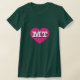 Esta t-shirt tem um coração cor-de-rosa-quente vibrante contendo as letras maiúsculas brancas em negrito MT, a abreviação oficial para Montana, o estado do tesouro.