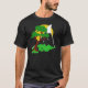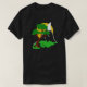 Camisa dos Arty t com uma imagem de um por do sol atrás de uma montanha.