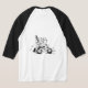 Camiseta Básica, Mangas Raglan 3/4, Branco/Preto, Adulto M