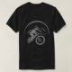 Este design apresenta um motociclista de montanha com montanhas ao fundo.