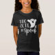 A t-shirt temática Adorável do Halloween apresenta a citação "demasiado fofa para assustar" em letras brancas, juntamente com uma ilustração fantasma bonitinha com pestanas.