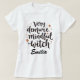 A camisa personalizada do Halloween Clássica design apresenta o texto "Muito Demura, Bruxa Mindful" em tipografia no estilo caligrafia negra. Faz o melhor presente de Halloween personalizado para ela - sua amiga, namorada, irmã ou até sua vizinha! Perfeito para fazê-los sentir-se especiais, aumentar a sua confiança e obter um dom único e infeliz!