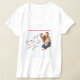 A imagem exibe uma pessoa vestindo uma camiseta branca no pescoço V enfeitada com um design único impresso. A design apresenta uma fotografia de um indivíduo sentado com um joelho para cima e a outra perna torta, enquanto a face na fotografia fica intencionalmente desfocada. Acima da fotografia, o texto vermelho em negrito proclama, "UMA PESSOA, AMOR INFINITO." Abaixo da fotografia, o elegante texto cursivo diz, "Fazer o que você ama nunca é perda de tempo." Esta peça casual e na moda combina a moda moderna com uma mensagem inspiradora, perfeita para aqueles que apreciam o conforto e as expressões significativas.