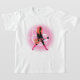Uma mulher de rosa e preta planeia um violão. Esta design parece muito eficaz nesta Camiseta de Meninas