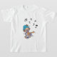 Musical Clown Joy T-Shirt. A cheerful clown with a blue hat and colorful outfit playing an orange guitar surrounded by musical notes.