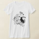 Esta camiseta feminina apresenta um design sereno e simbólico: um gato negro sentado calmamente na curva de meia lua, cercado por flores delicadas e borboletas fluviais. Uma borboleta solteiro repousa no topo da lua, criando um momento de silêncio e conexão. Os sotaques florais ao longo do lado esquerdo da lua adicionam suavidade à cena mística.