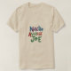 Uma design de camiseta divertida e saborosa, com uma placa deliciosa de nachos com uma variedade de reentrâncias. O texto "Nacho Média Joe" está escrito em uma fonte divertida e multicolorida, acrescentando um toque de humor e personalidade ao design. A imagem evoca sentimentos de fome, satisfação e amor por uma boa comida.