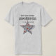 This patriotic men's ash grey t-shirt features a large star cutout with red and blue stars painted on rustic distressed wood planks for a vintage look, and black text in various fonts and sizes. Easily change or remove the diagonal name using the Template provided. (To edit and change/remove font style-color-size and more-- use the Design Tool.) Men's sizes range from Adult Small through 3XL. Many other styles and colors are available. See "About" for more information and care. Happy 250th Birthday America, 1776-2026. Stars